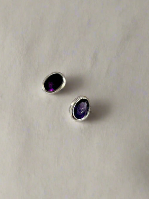 These delicate amethyst studs in 925 silver add a pop of color to any outfit. The genuine amethyst stones are carefully set in high-quality silver, creating a classic and elegant look. Get the perfect touch of sparkle with these timeless studs.