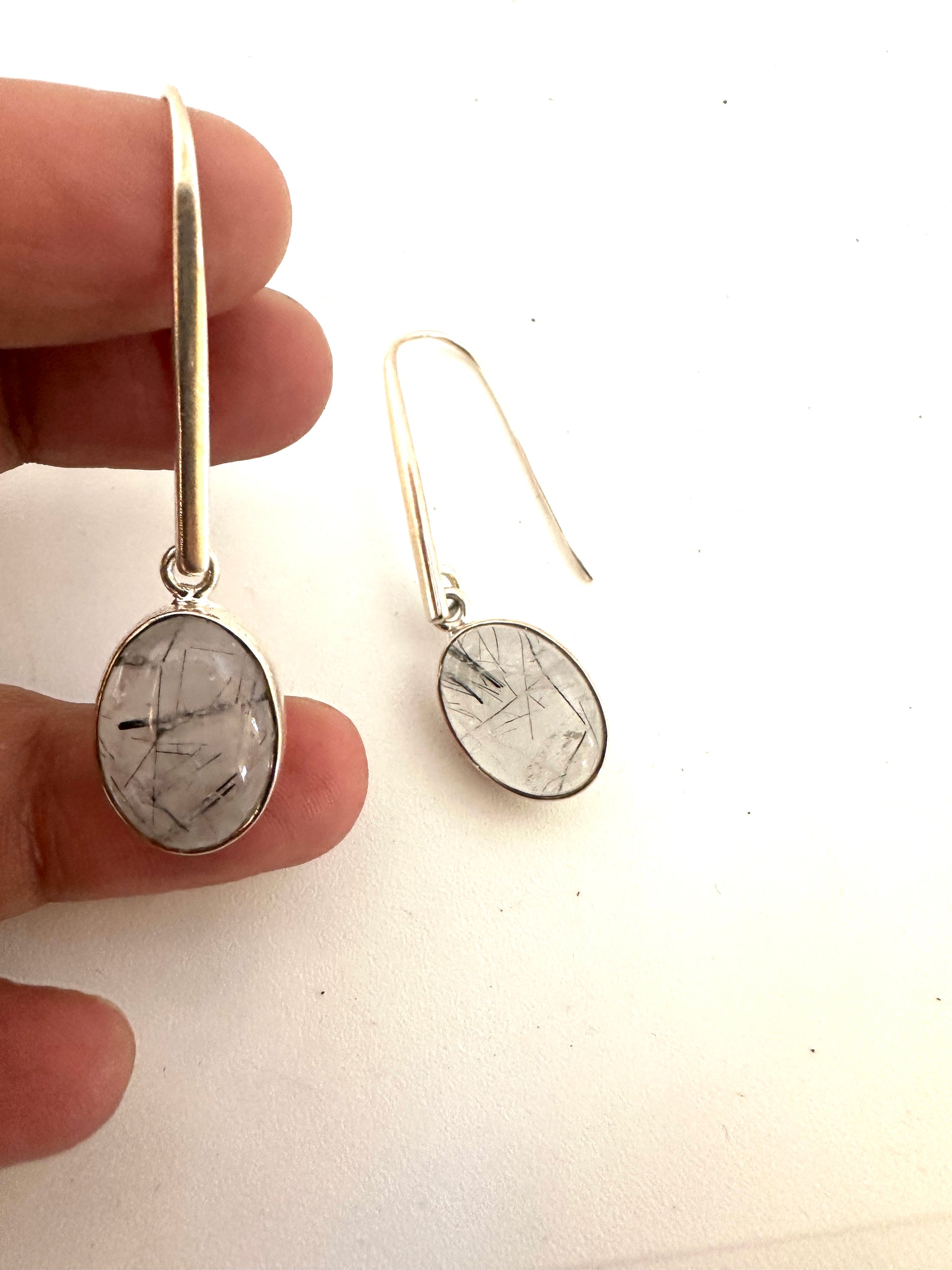 Enhance your style with Black Rutile Quartz earrings. These stunning earrings feature 925 silver hooks for a modern, minimalistic look. The natural black rutile quartz adds a touch of elegance to any outfit. Elevate your accessories with these unique and sophisticated earrings.