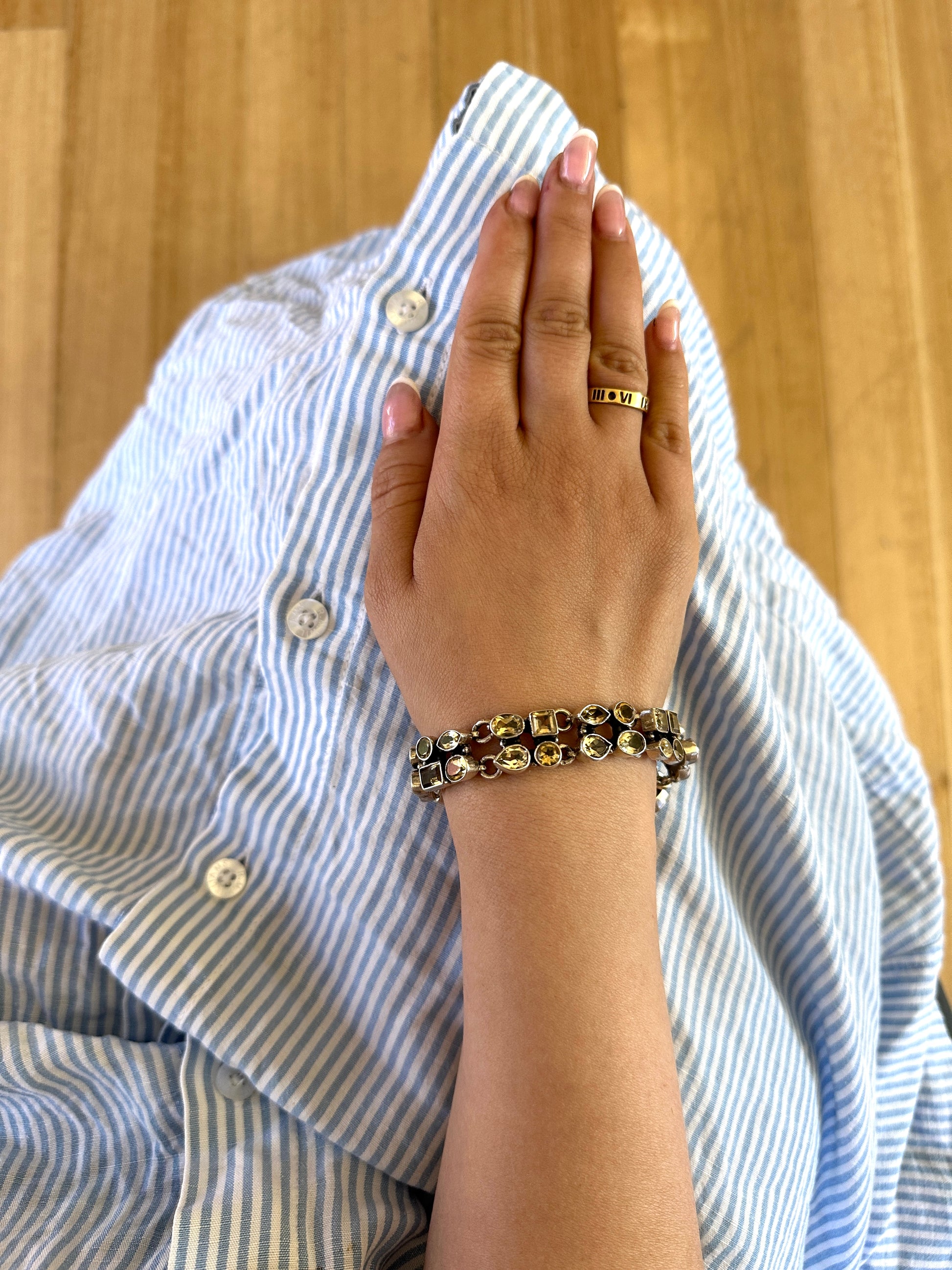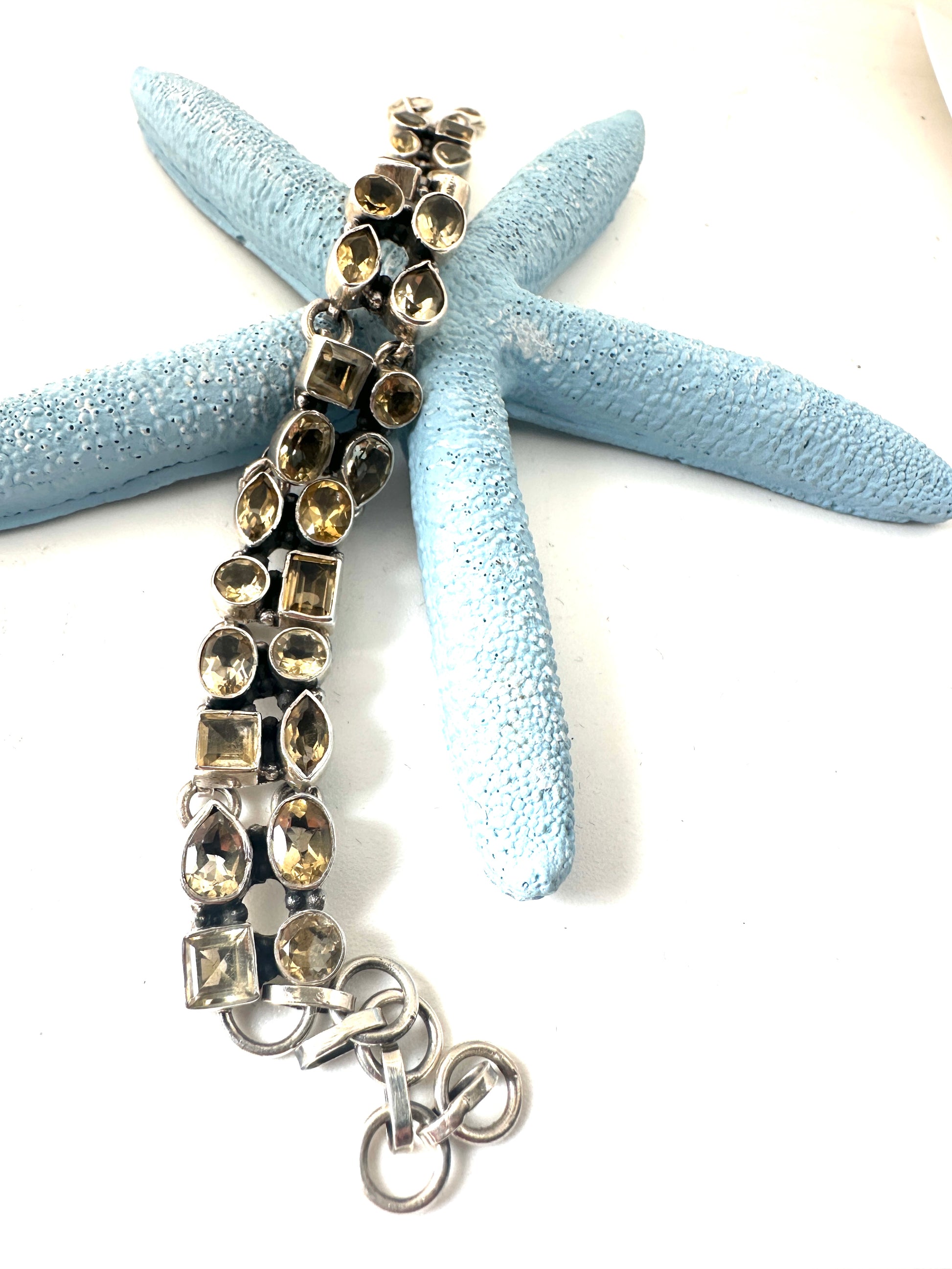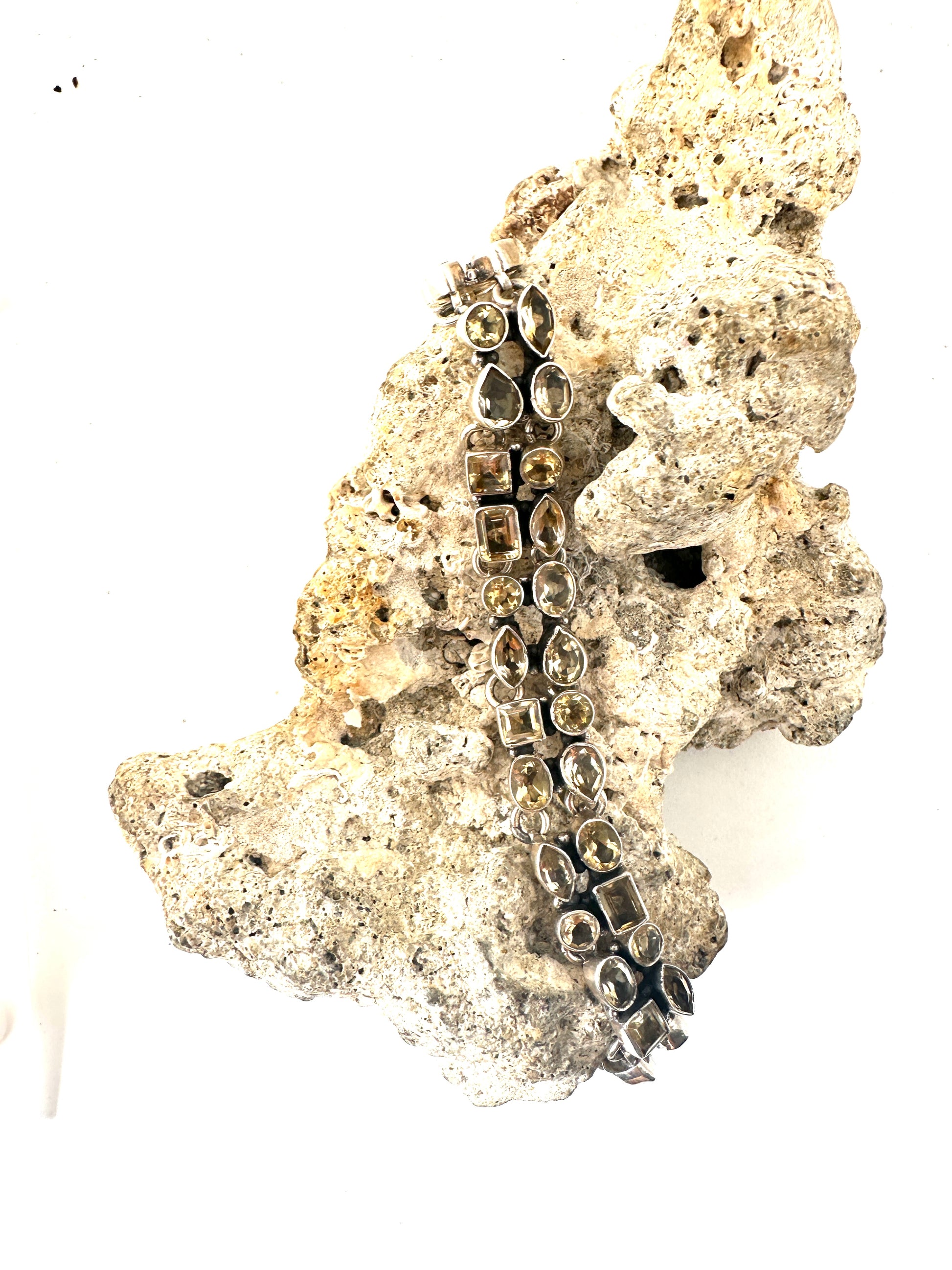 Experience the elegance of our gorgeous 2 strand 925 sterling silver bracelet adorned with faceted citrine stones in 4 unique shapes. Enhance your style with the radiance and positive energy of citrine, known to bring wealth, prosperity, and joy.