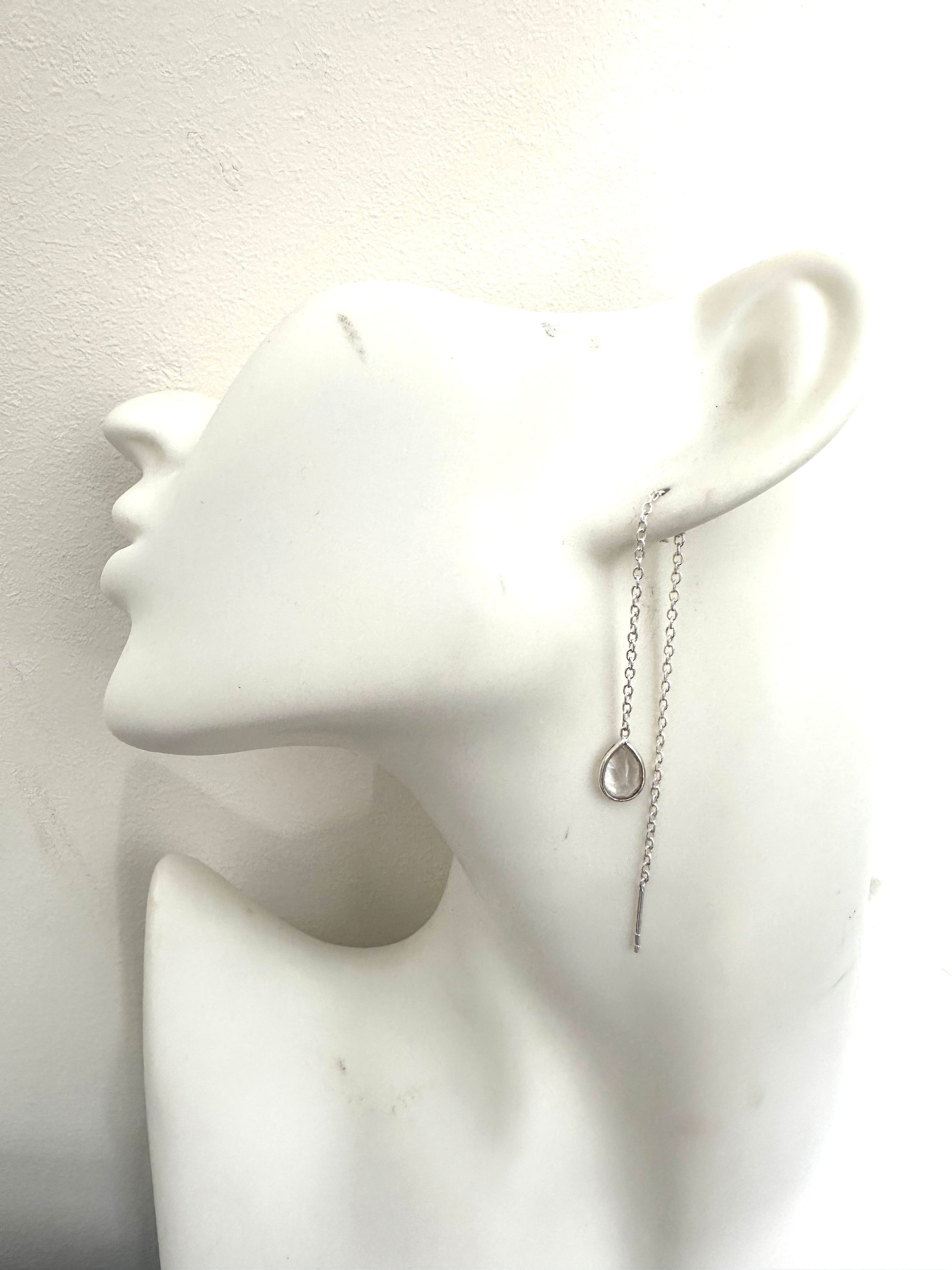 Experience the stunning beauty of Clear Quartz with our 925 sterling silver threader earrings. Crafted with the highest quality materials, these earrings offer a modern and sophisticated look while harnessing the powerful healing properties of Clear Quartz. Add a touch of elegance to any outfit with these versatile threaders.