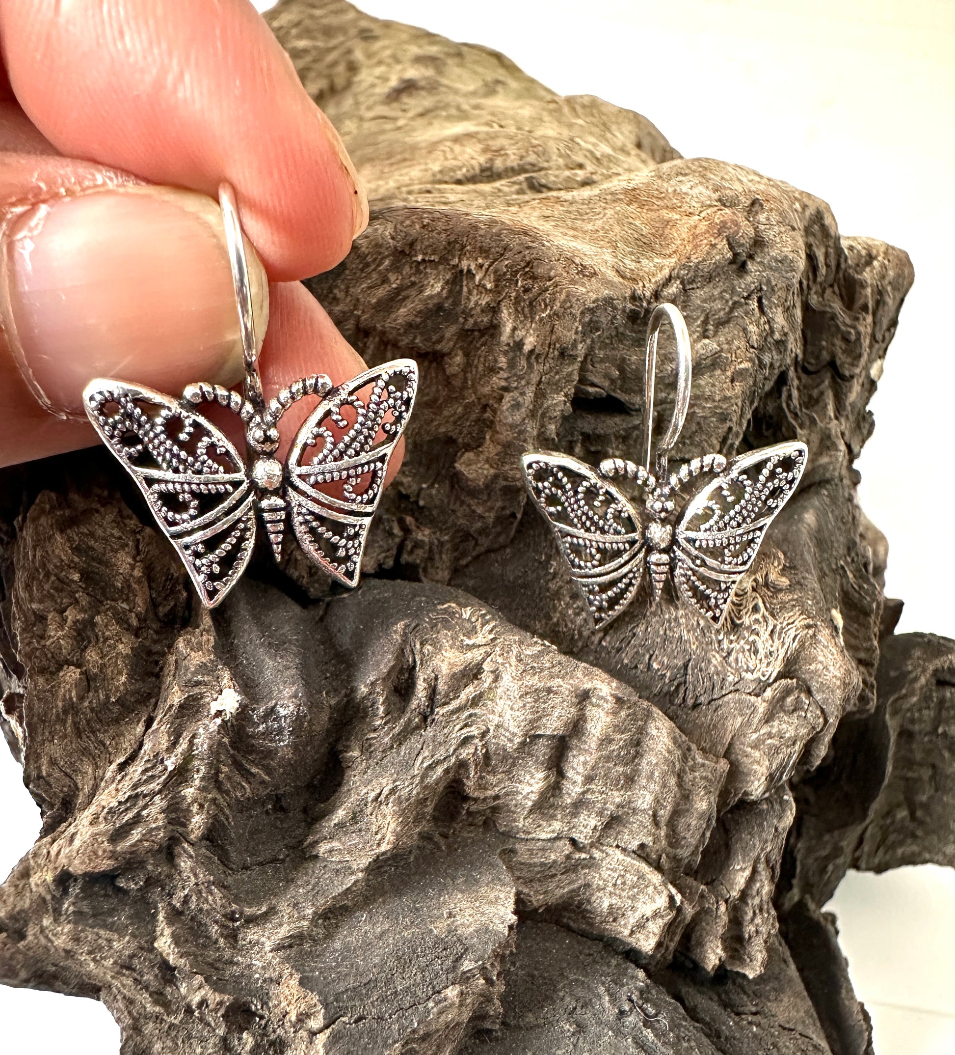 Add a touch of elegance to your jewelry collection with our Filigree Butterfly earrings. These delicate danglers are intricately crafted from 925 silver, showcasing a stunning butterfly design. Perfect for any occasion, these earrings are sure to make a statement and elevate any outfit with their timeless beauty.