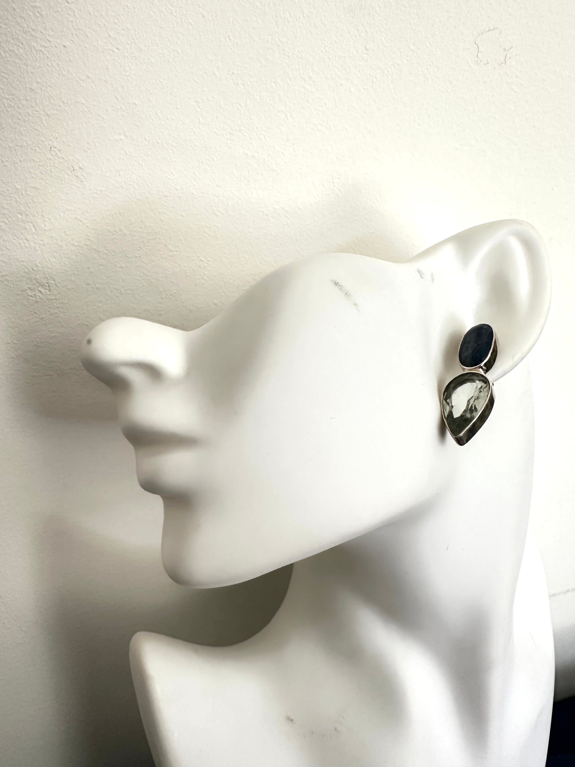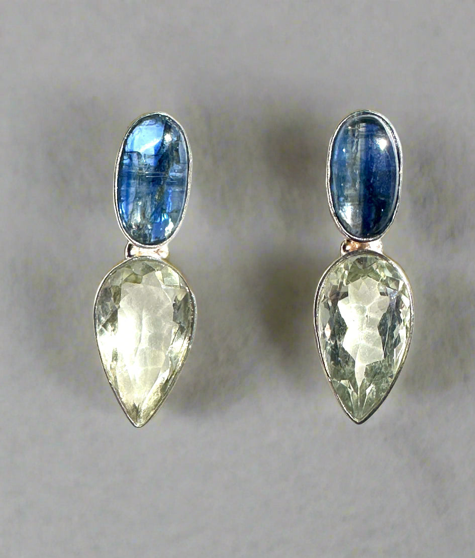 Expertly crafted with 925 silver, Green Amethyst and Kyanite drop earrings add a touch of elegance to any outfit. The combination of soothing green hues and intricate design make these earrings a must-have. Experience the benefits of wearing natural gemstones and elevate your style with these unique earrings.