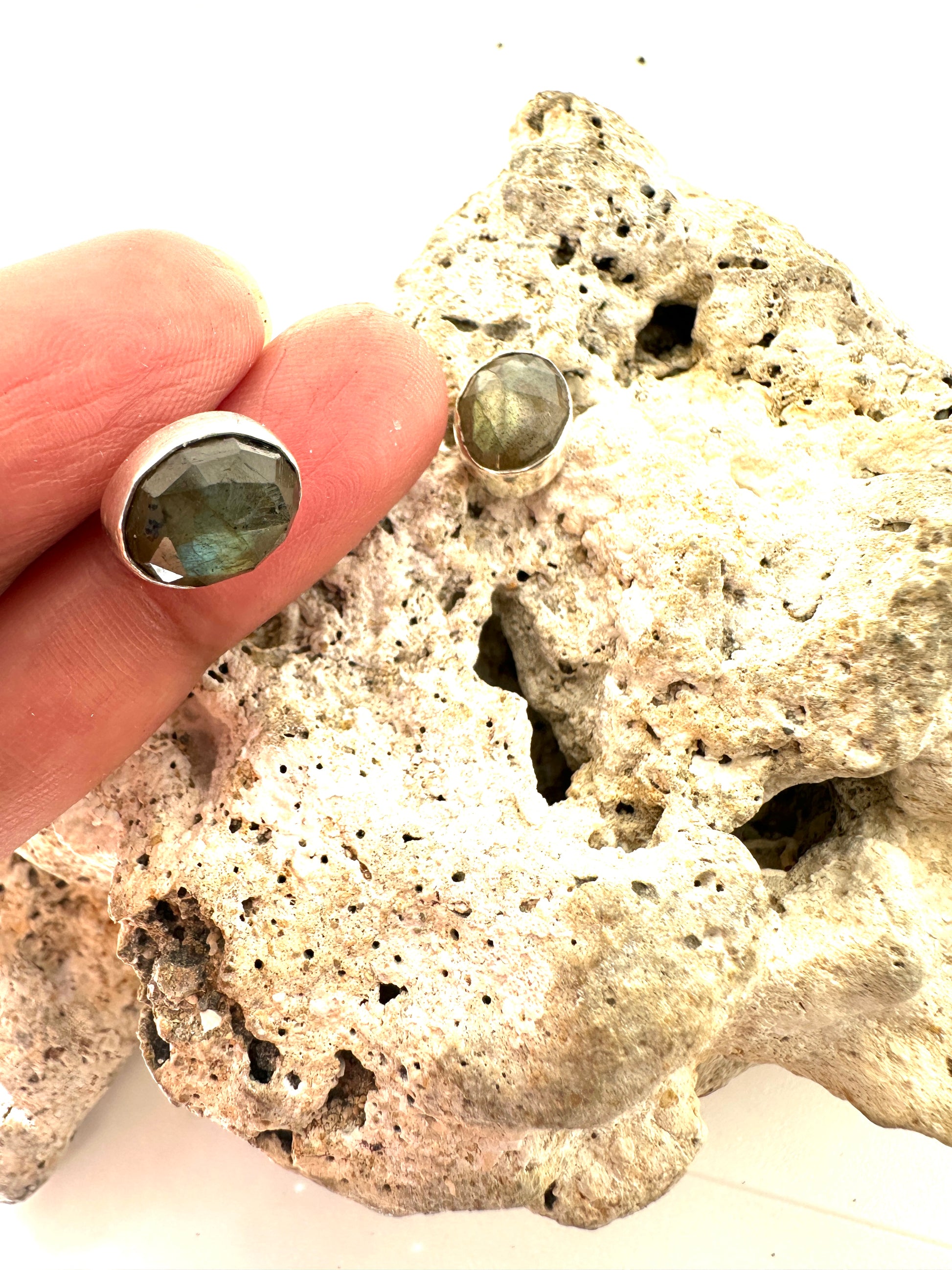 Crafted with 925 silver studs, these Labradorite cabochons radiate a stunning iridescent glow. Each stone is unique, reflecting varying shades of blue, green, and gold. Perfect for any occasion, these earrings will elevate any outfit with a touch of elegance and natural beauty.