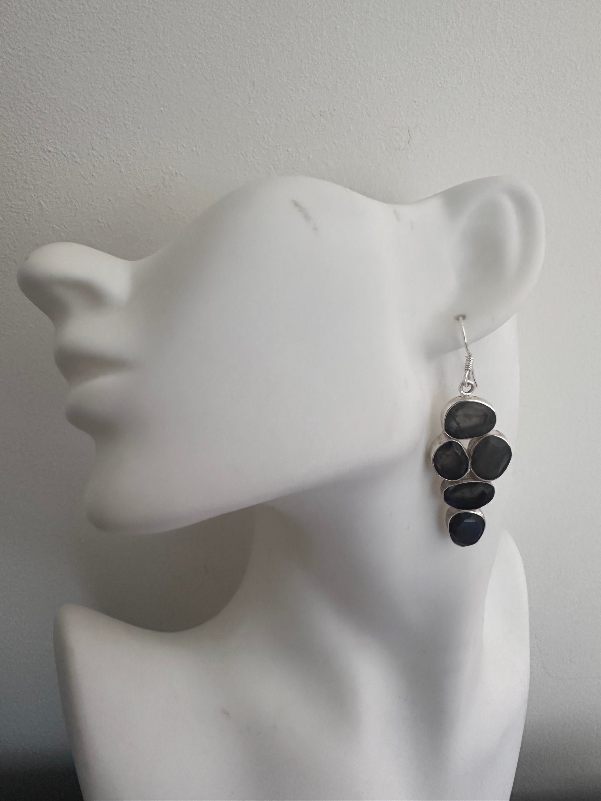 Experience the natural beauty of labradorite with these stunning 925 sterling silver cluster earrings. Featuring a unique blue tinge, each piece is one-of-a-kind and will add a touch of elegance to any outfit. Handcrafted for durability and style, these earrings are perfect for any occasion.