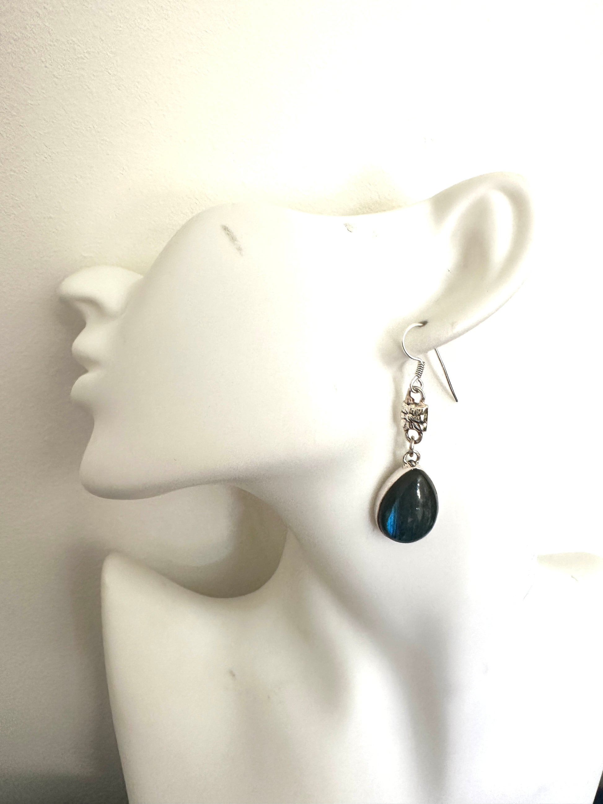 Discover the stunning beauty of these Labradorite teardrop earrings with a 925 sterling silver bead. Crafted with exquisite detail, these earrings are the perfect addition to any outfit. The iridescent Labradorite stones reflect light in mesmerizing ways, making them a truly unique and elegant accessory. Elevate your style with these gorgeous earrings.