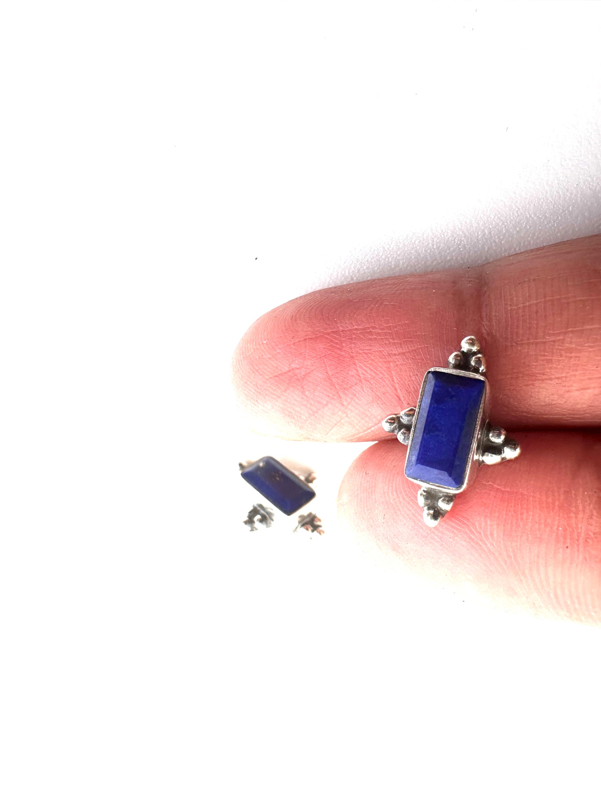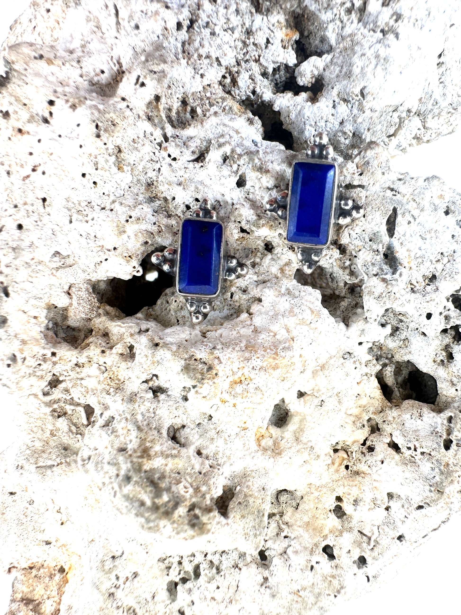 Experience timeless elegance with our rectangle lapis lazuli delicate silver stud earrings. The rich blue tones of lapis lazuli represent inner wisdom and truth, making these earrings a beautiful symbol of self-discovery. Carefully crafted with silver, these earrings are perfect for any occasion.