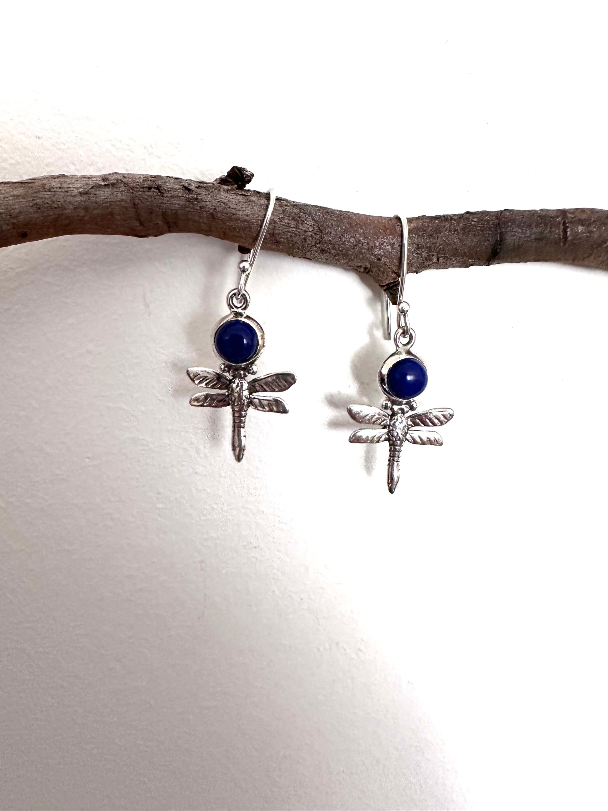 Enhance your style with our Lapis Lazuli Dragonfly earrings. Made with genuine lapis lazuli stones with a 925 sterling silver dragonfly drop, these earrings bring beauty and elegance to any outfit. Elevate your look with the power of lapis lazuli, known for promoting inner peace and harmony. Perfect for any occasion, these dragonfly earrings are a must-have for any fashion-forward individual.
