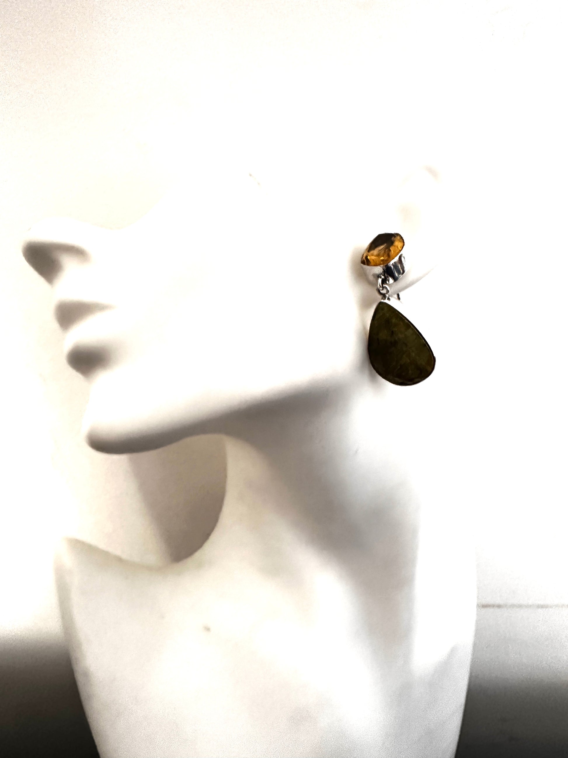 Elevate your collection with these expertly crafted earrings, featuring beautiful apple green Madagascar opals paired with vibrant citrine gemstones. Each gem is set in high-quality 925 sterling silver, offering a unique contrast of color and form. These earrings deliver a refined blend of natural elegance and artisanal craftsmanship, ideal for those who appreciate distinctive, sophisticated jewelry.