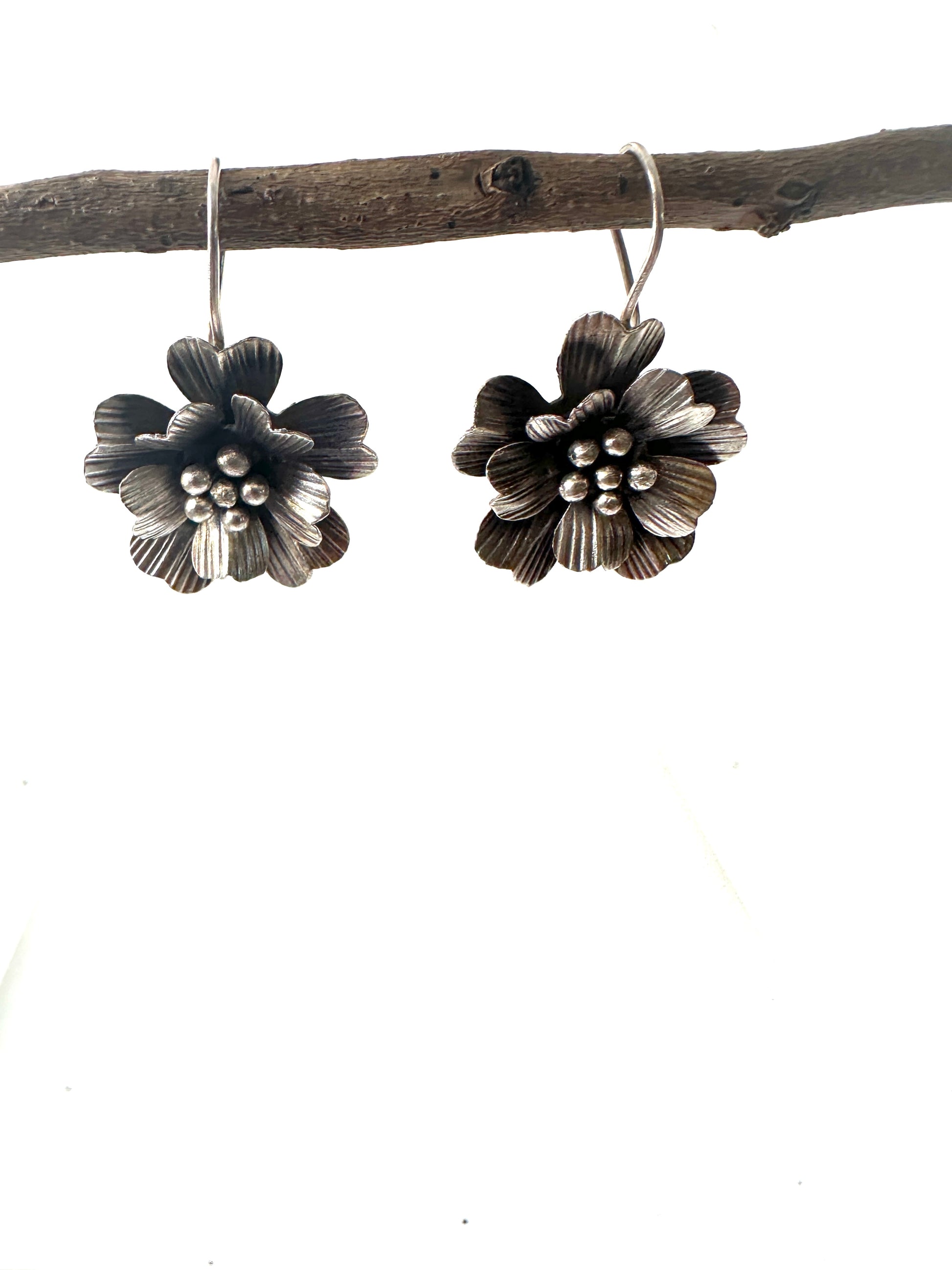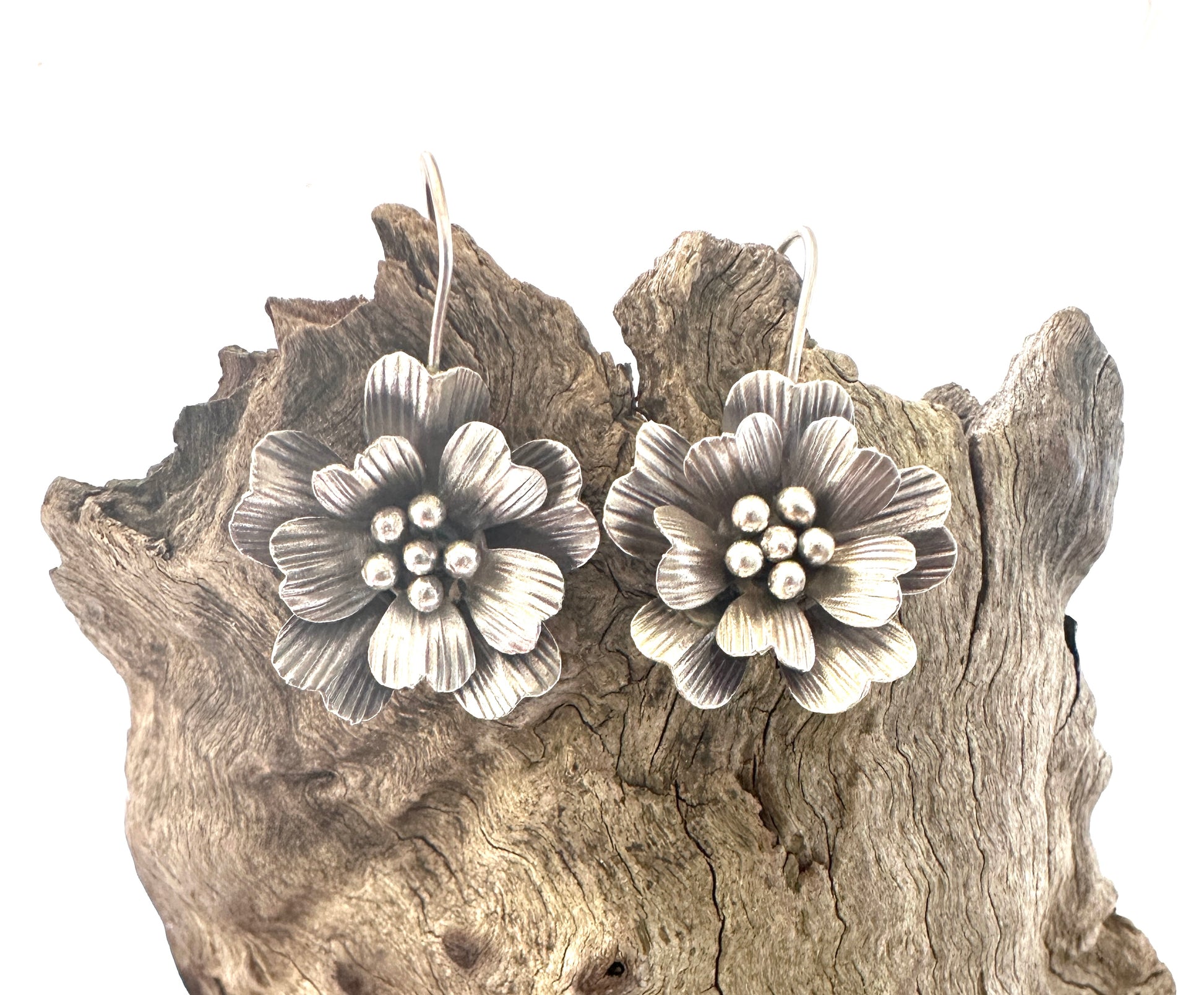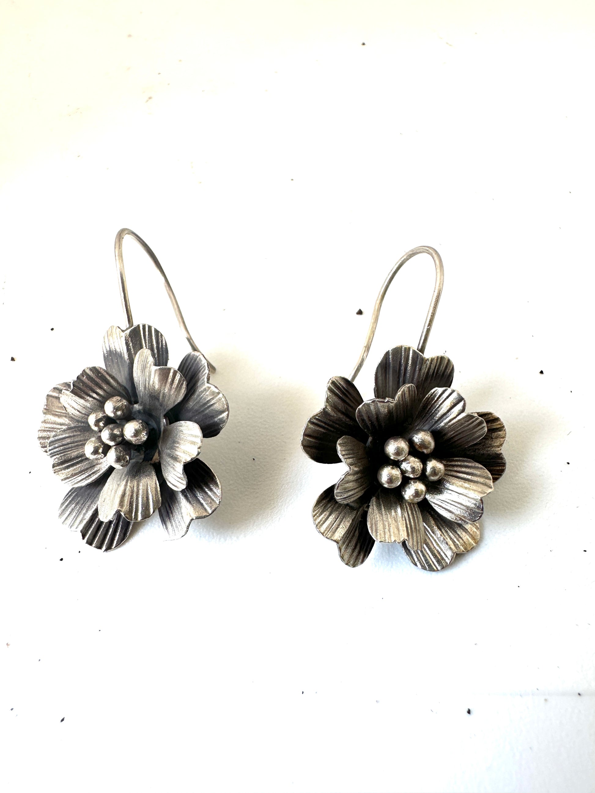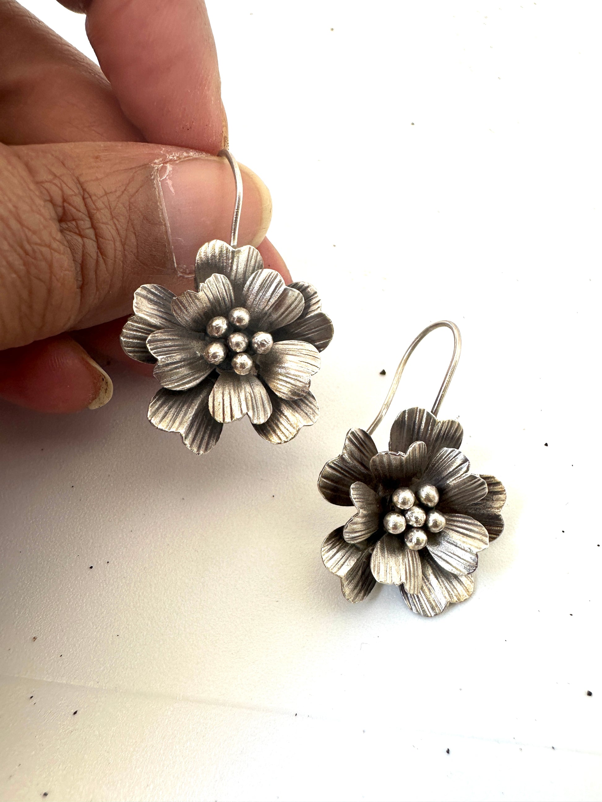Handmade with 98.9% silver, these peony flower earrings are a stunning addition to any jewelry collection. The intricate design and expert craftsmanship make these earrings truly unique. Elevate your style with these beautiful, one-of-a-kind pieces.