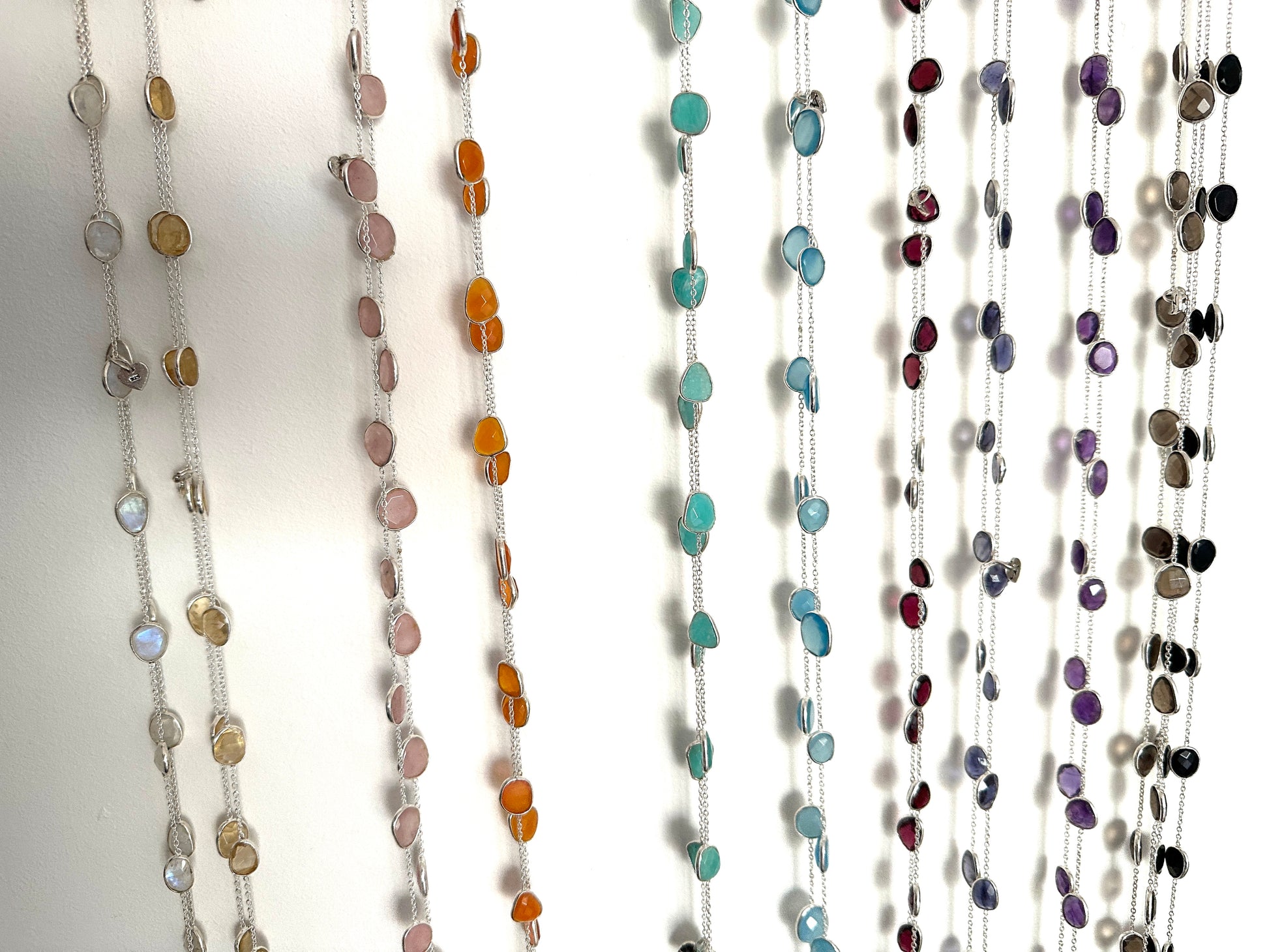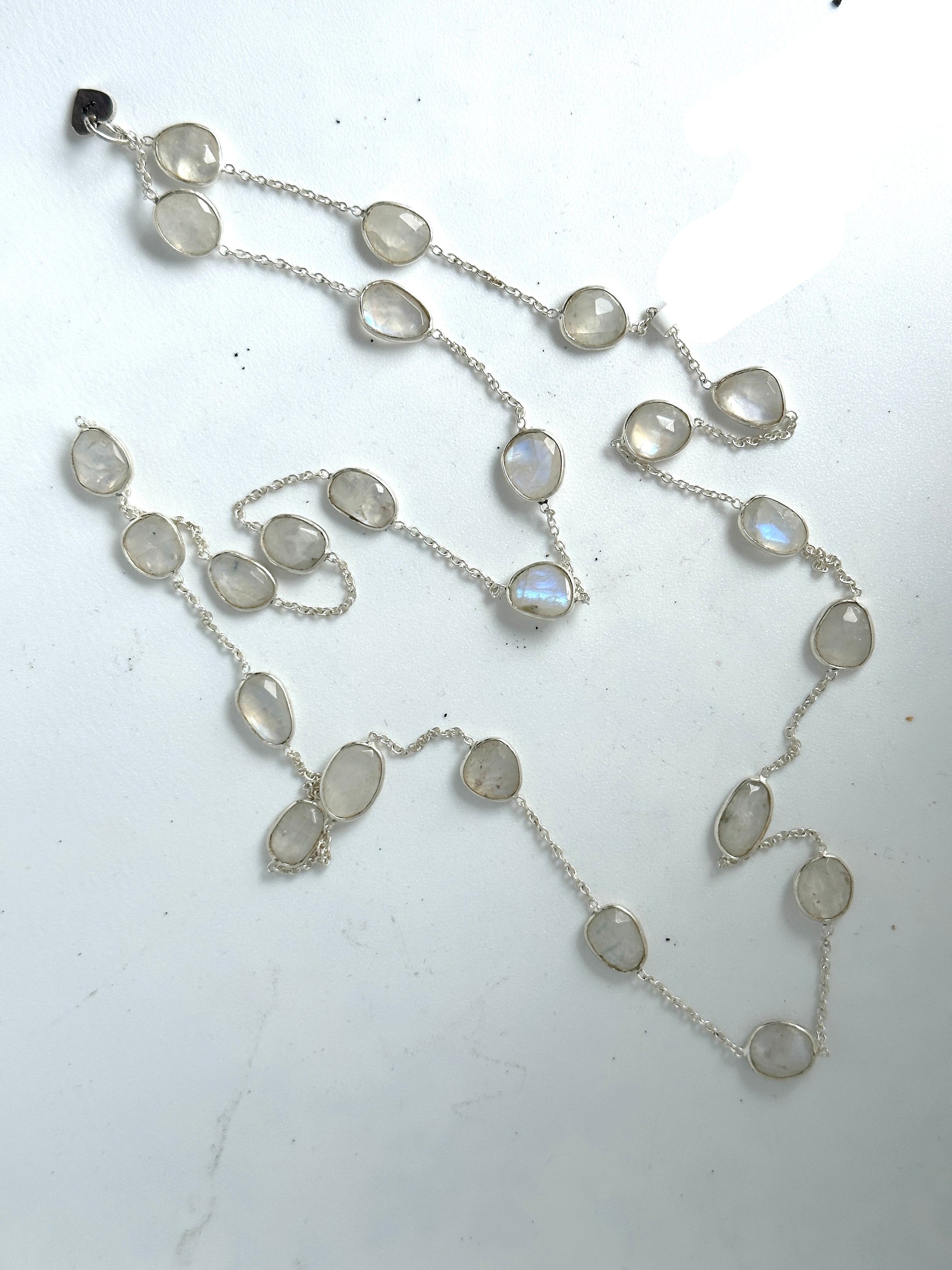 Add a touch of elegance and sparkle to any outfit with our Rainbow Moonstone necklace. The beautiful moonstone is encased in 925 silver and hangs on a long chain, perfect for adding a pop of color. Embrace the unique properties of the moonstone - balance, harmony and inner peace.