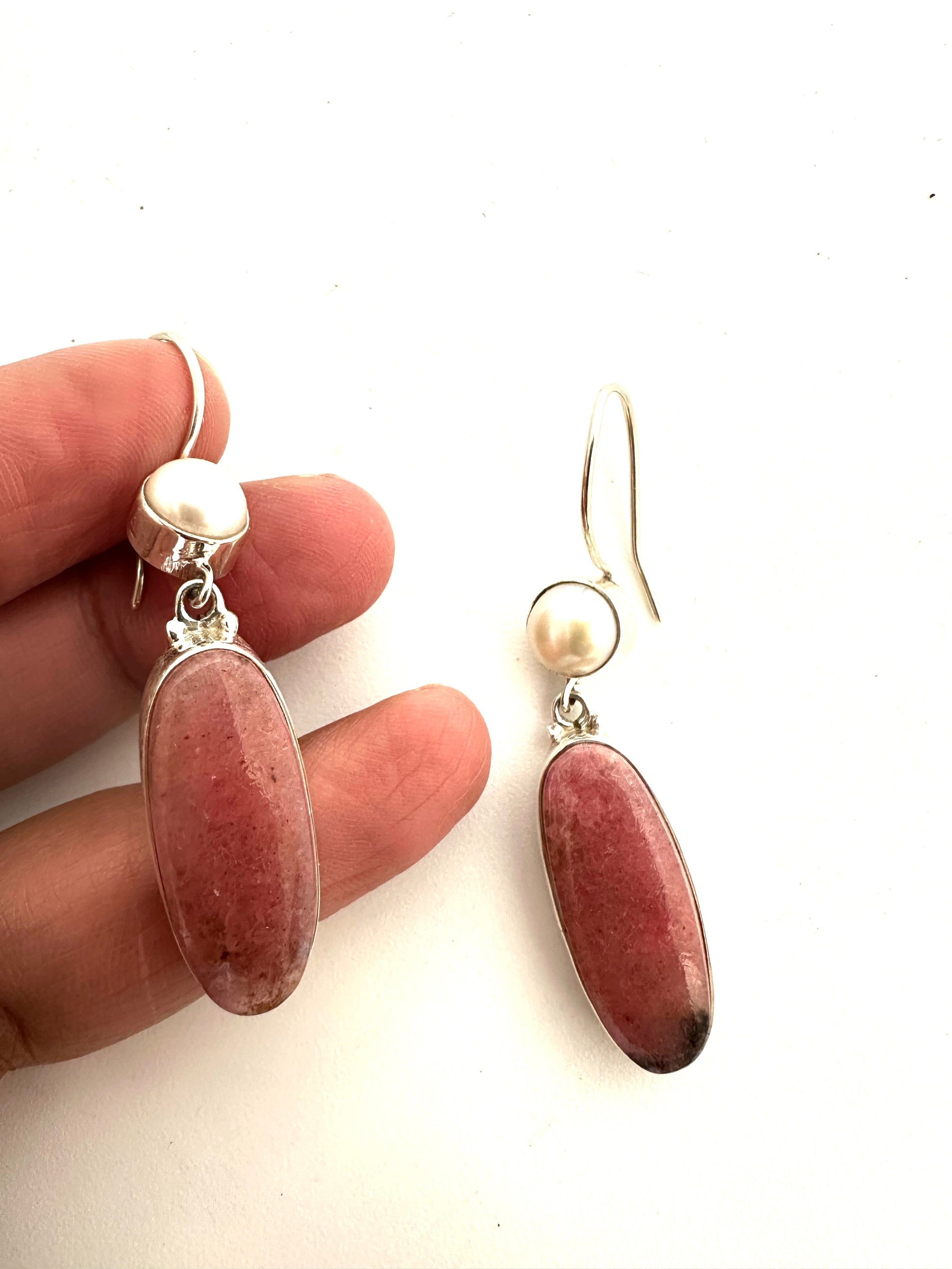 Elevate your style with these stunning 925 sterling silver earrings featuring a beautiful Rhodonite and pearl top hook design. A perfect addition to any jewelry collection, these earrings provide a touch of elegance and sophistication to any outfit. Upgrade your look with Rhodonite and pearl earrings.