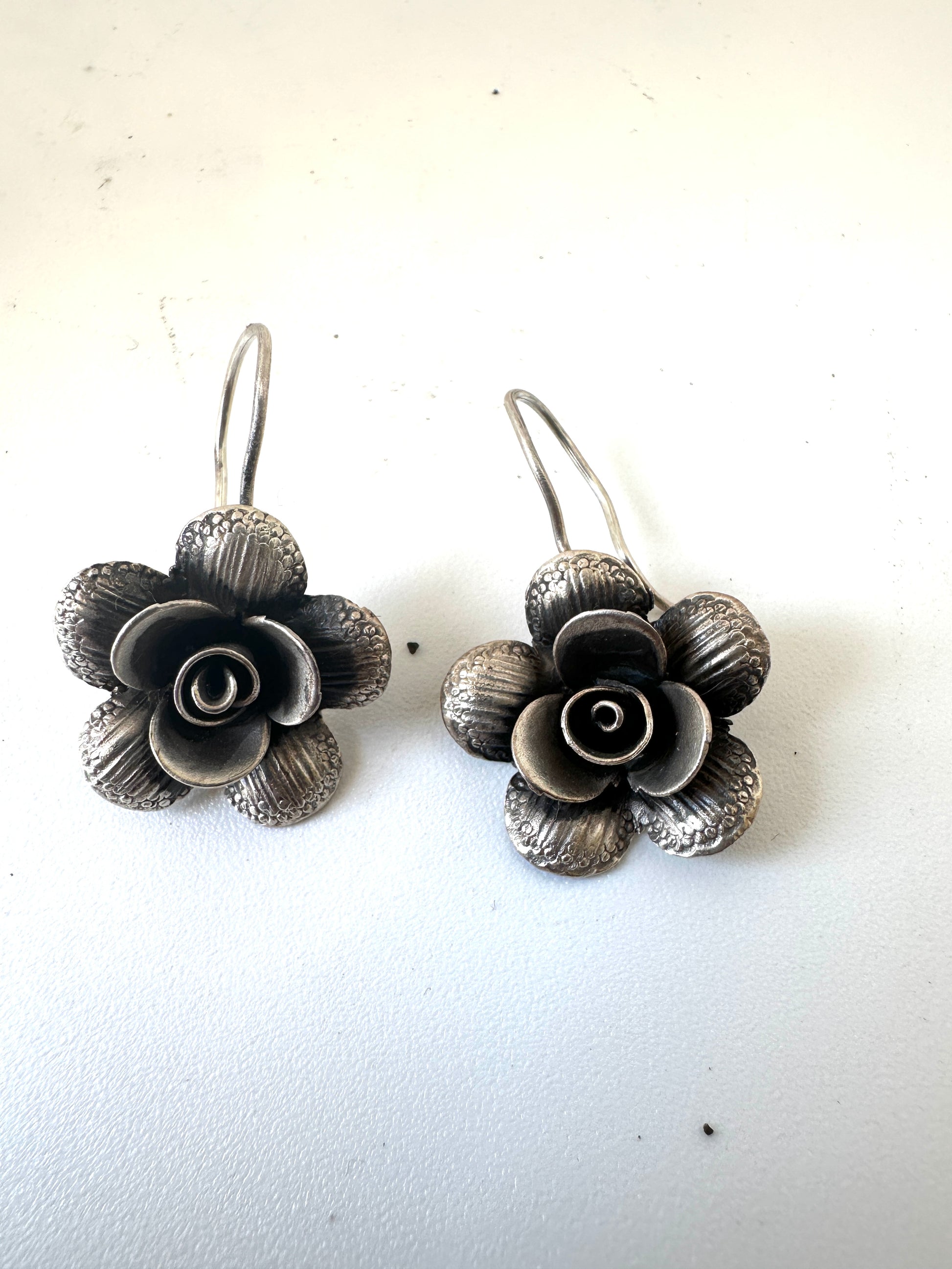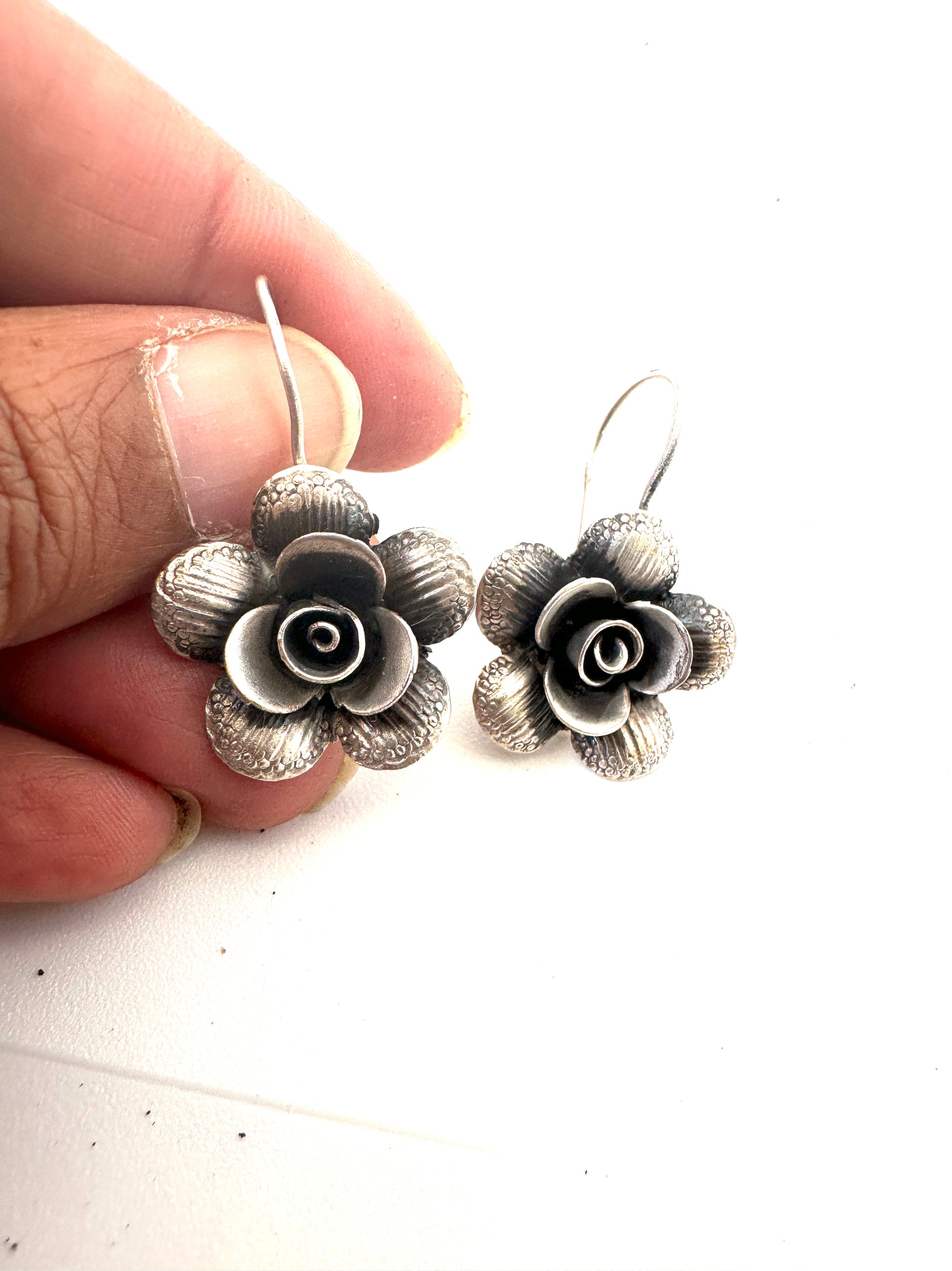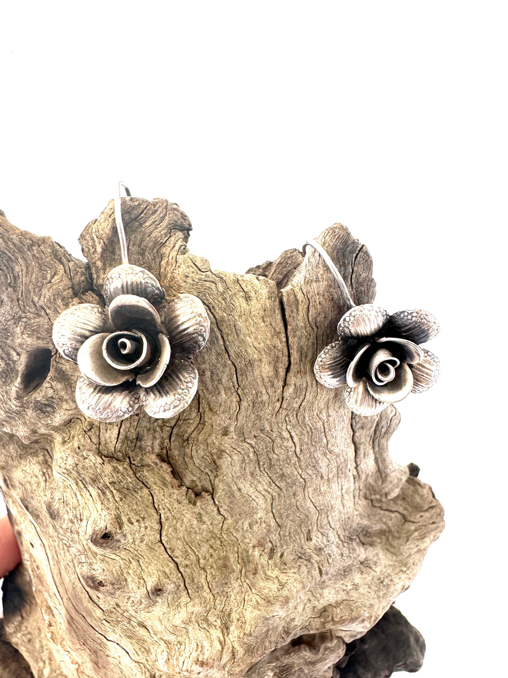 Expertly crafted from 98.9% silver, these large handmade rose earrings make a delicate and stunning addition to any outfit. With intricate floral detailing, these earrings are the perfect way to express your love and add a touch of elegance.