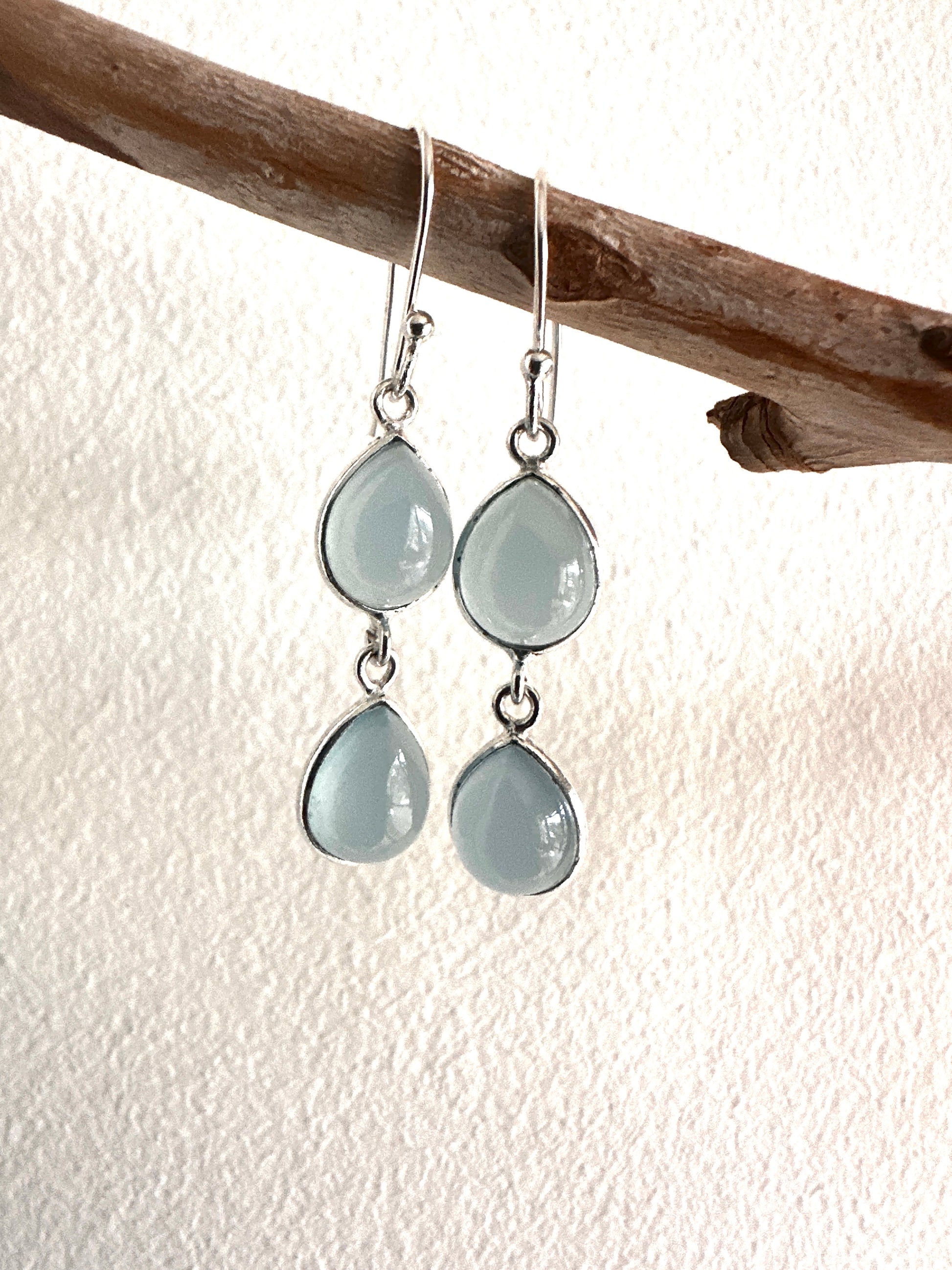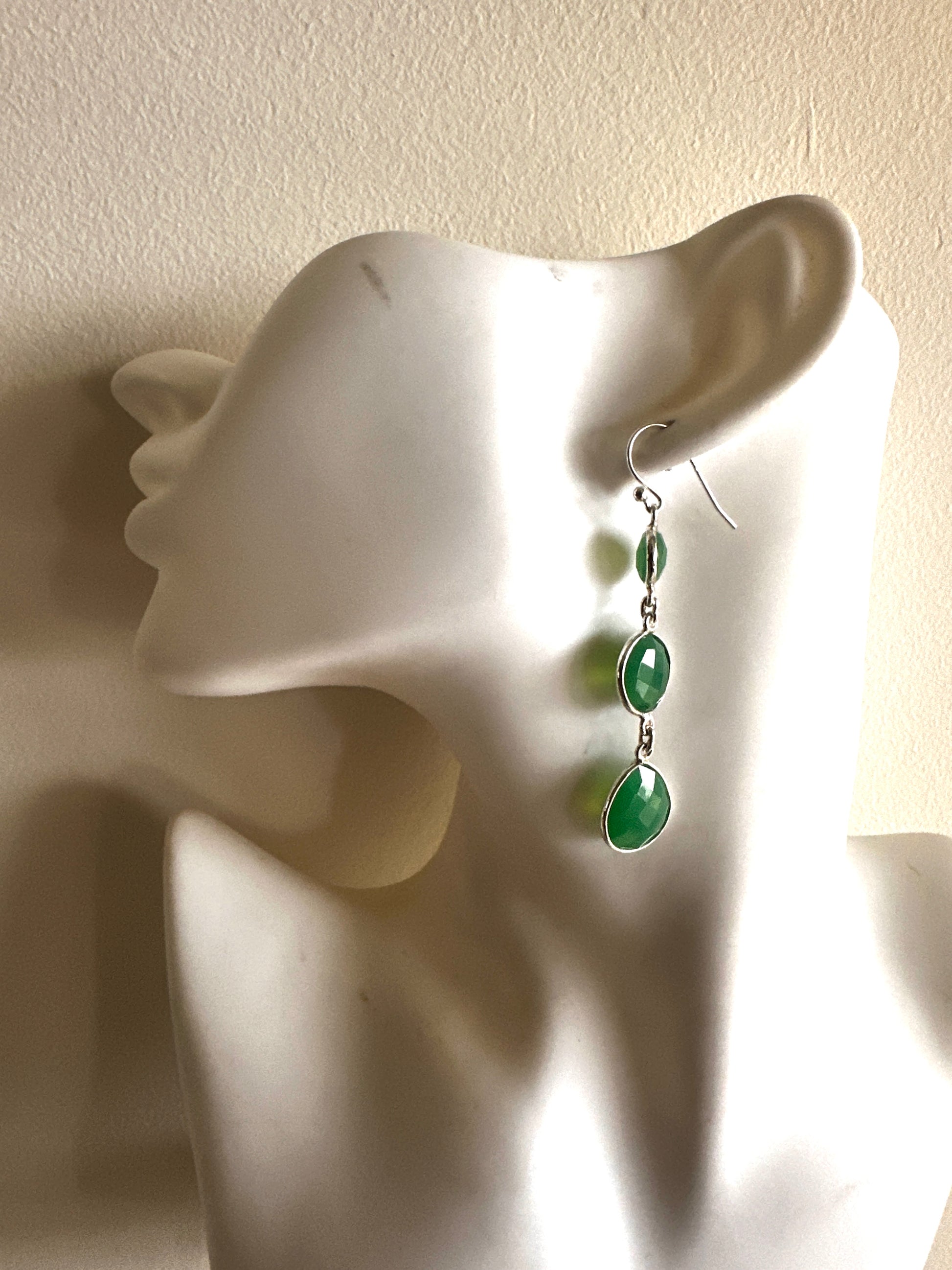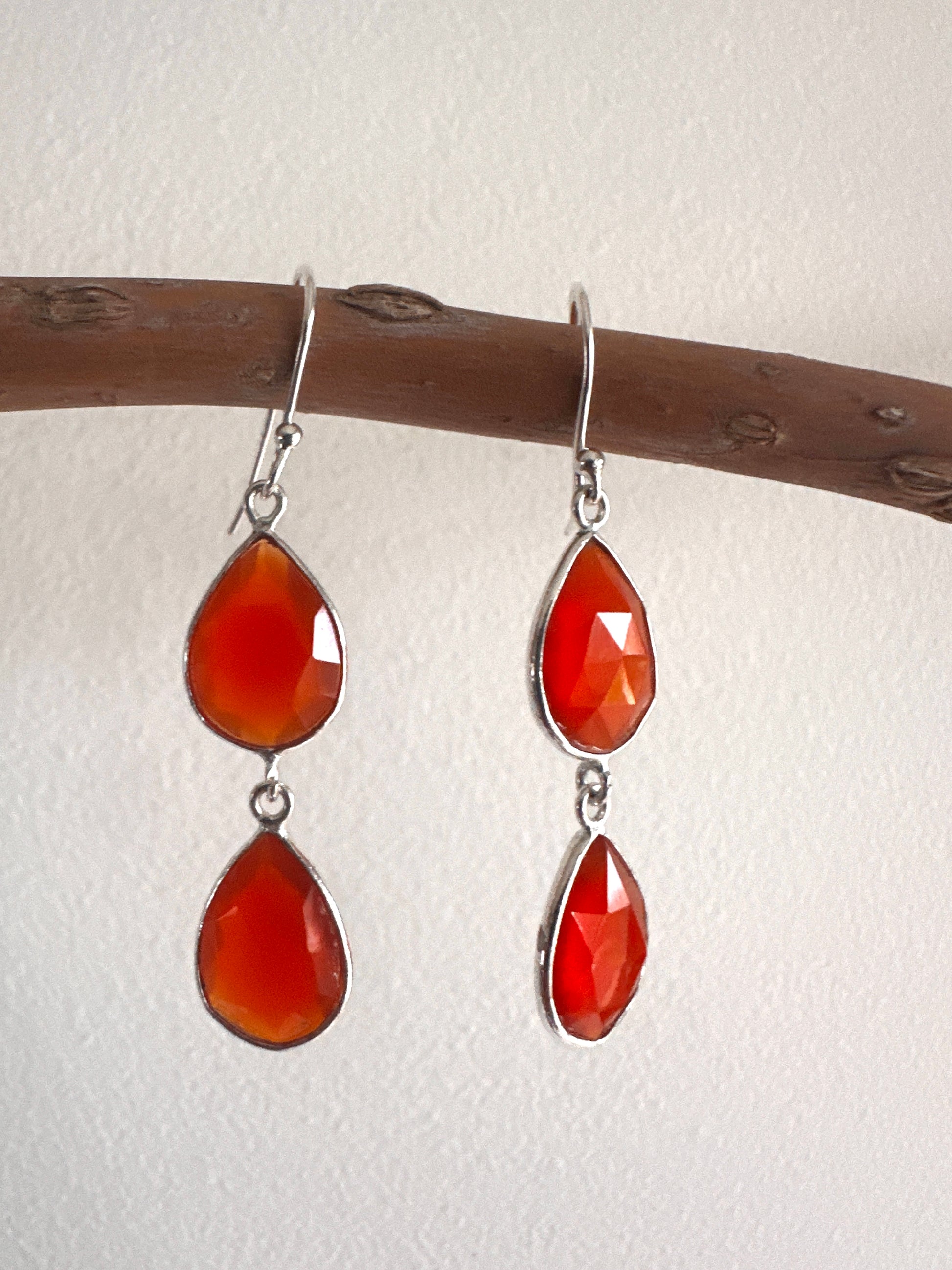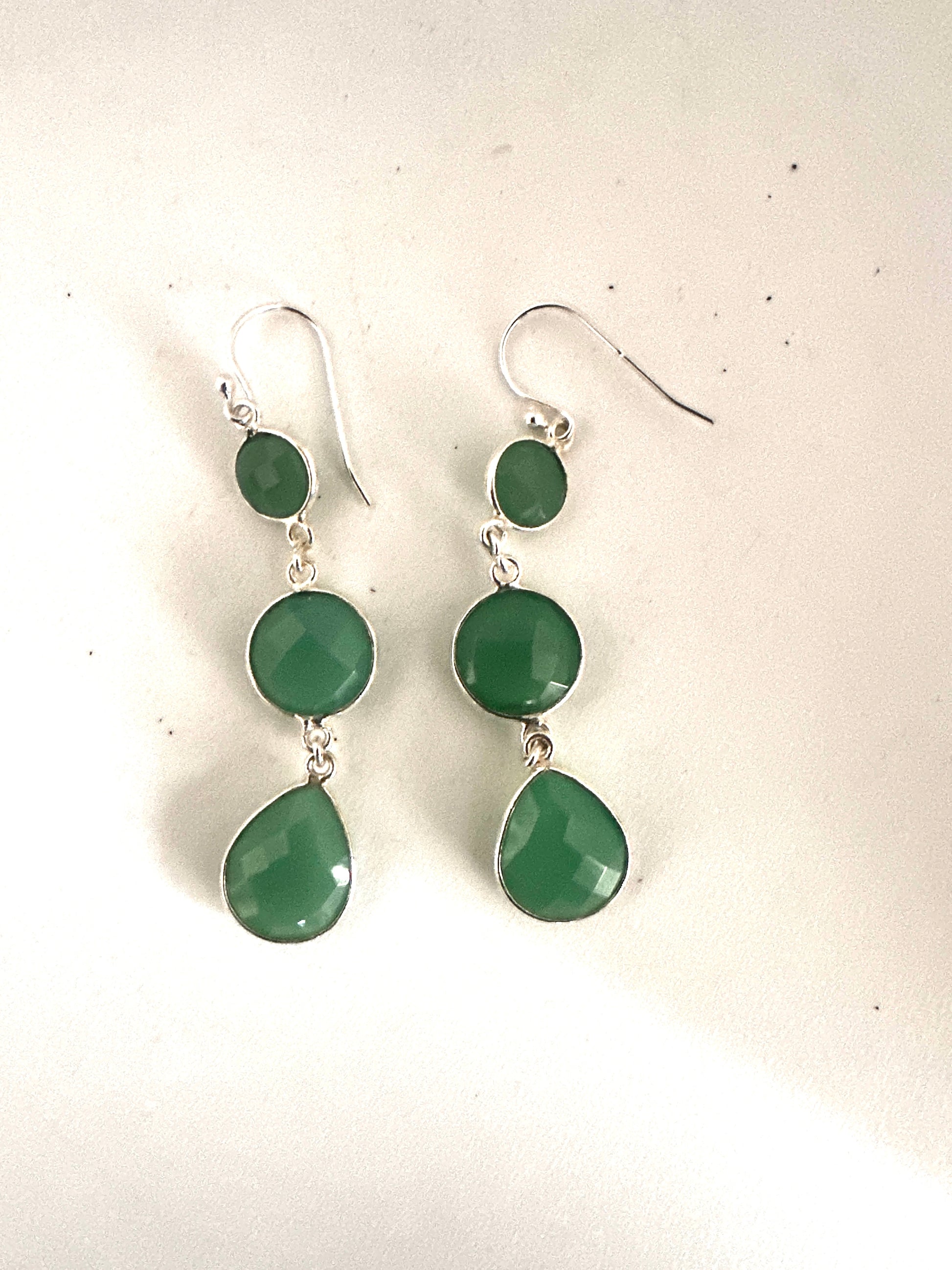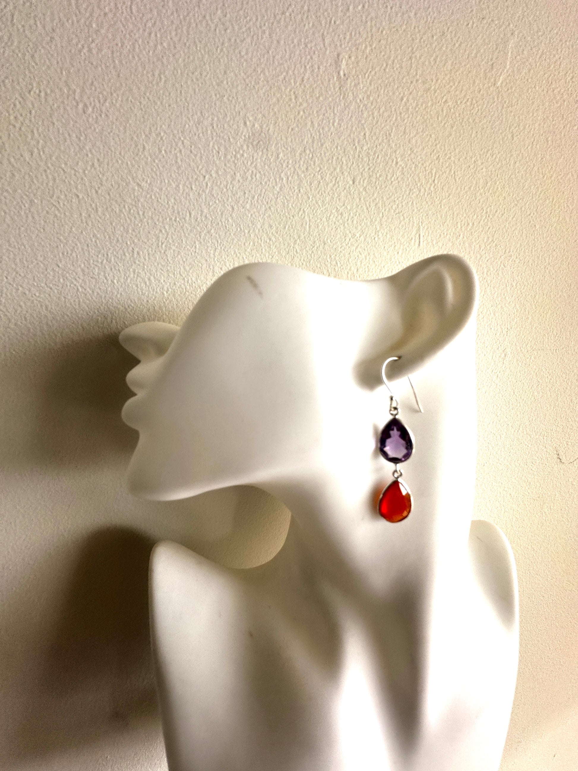 These earrings feature faceted tear-shaped stones expertly set in sterling silver, combining various stone arrangements for a refined look. Their delicate design and elegant craftsmanship make them an ideal accessory for formal occasions, adding subtle sophistication to any ensemble.