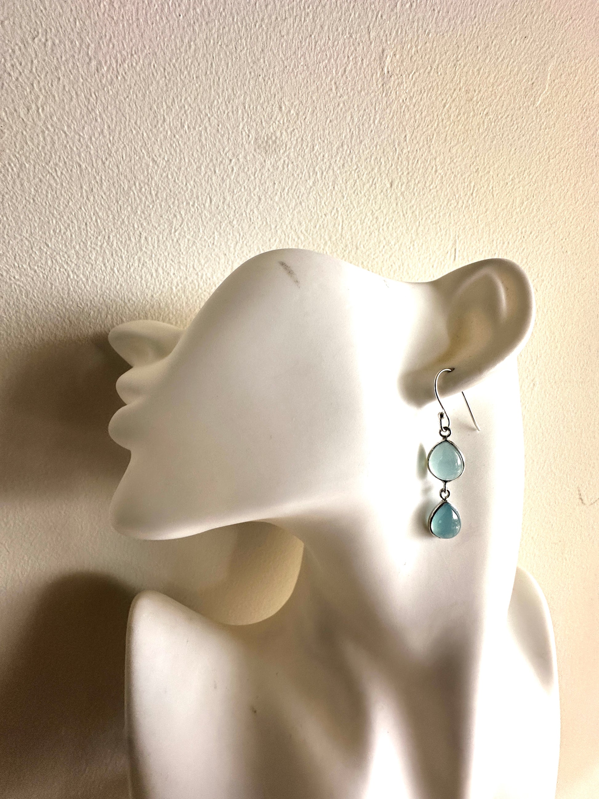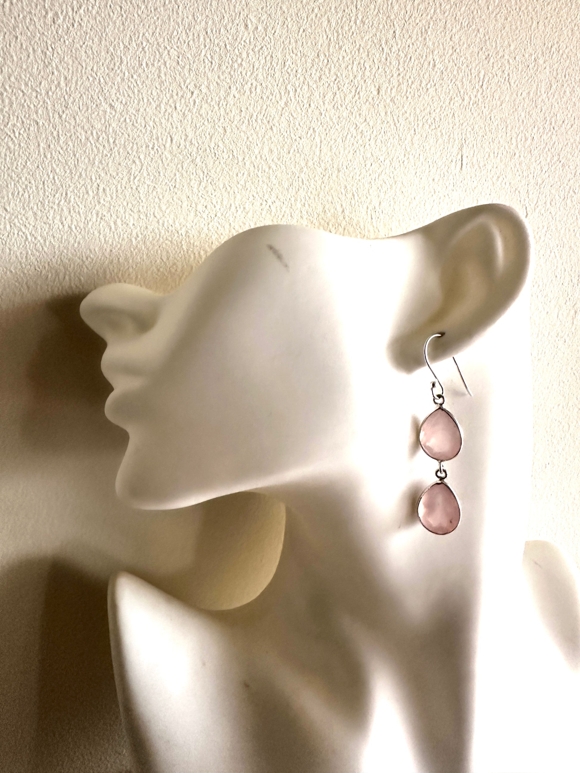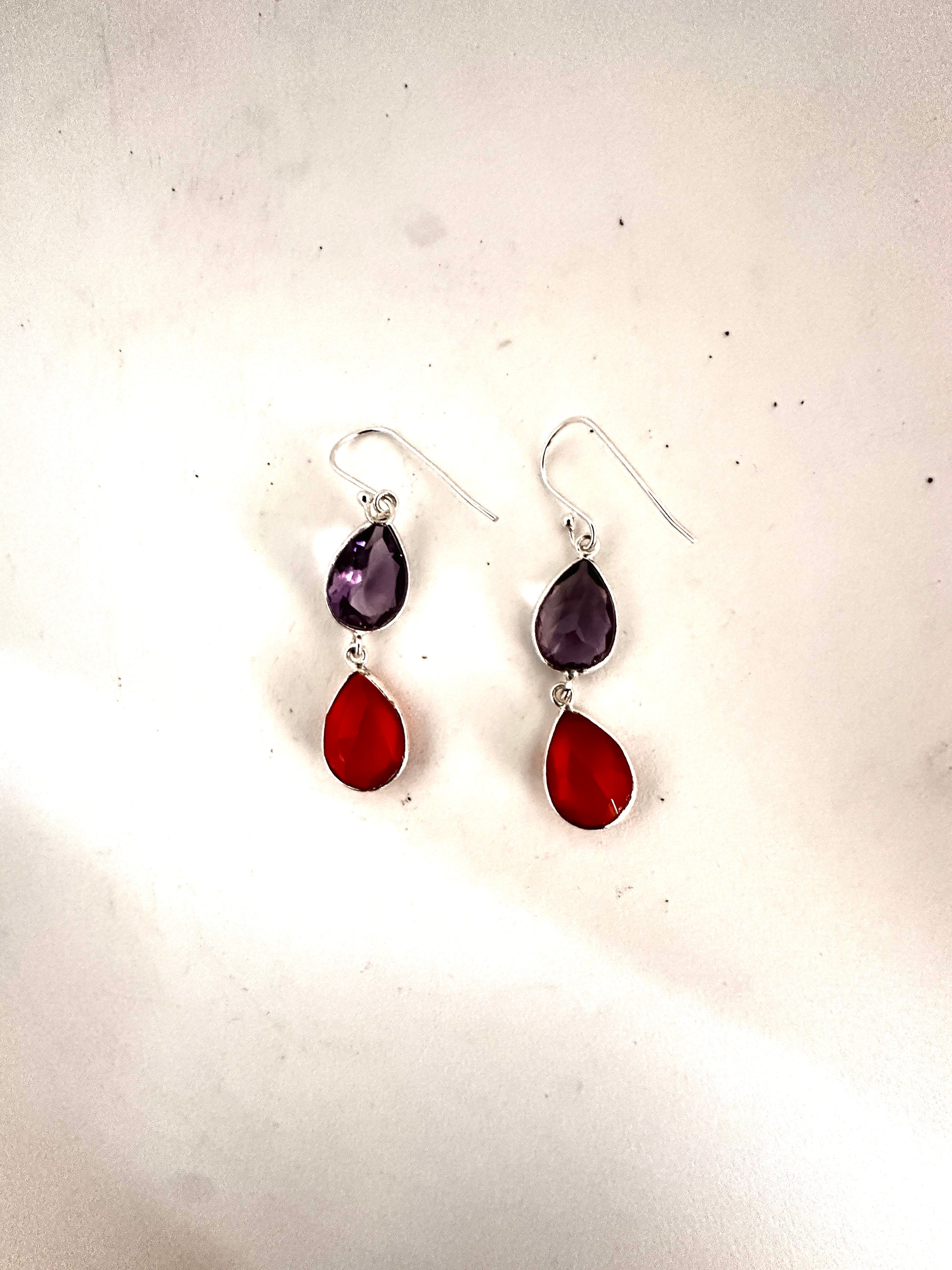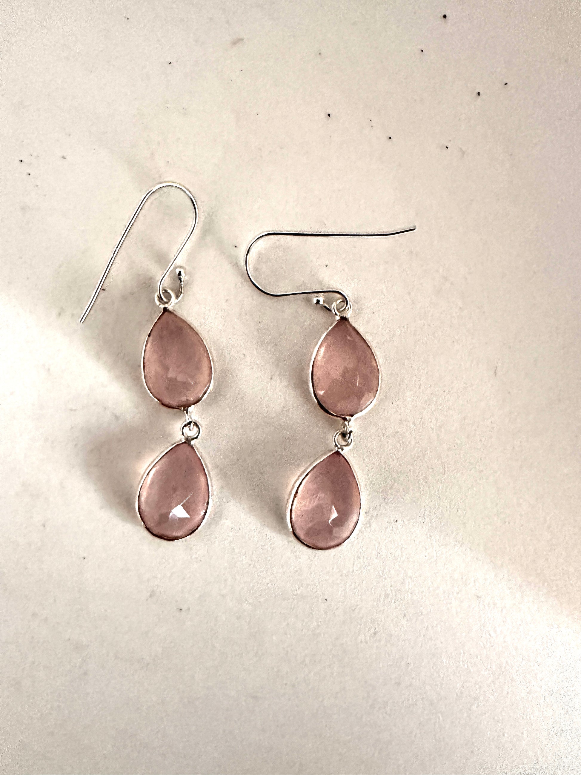 These earrings feature faceted tear-shaped stones expertly set in sterling silver, combining various stone arrangements for a refined look. Their delicate design and elegant craftsmanship make them an ideal accessory for formal occasions, adding subtle sophistication to any ensemble.