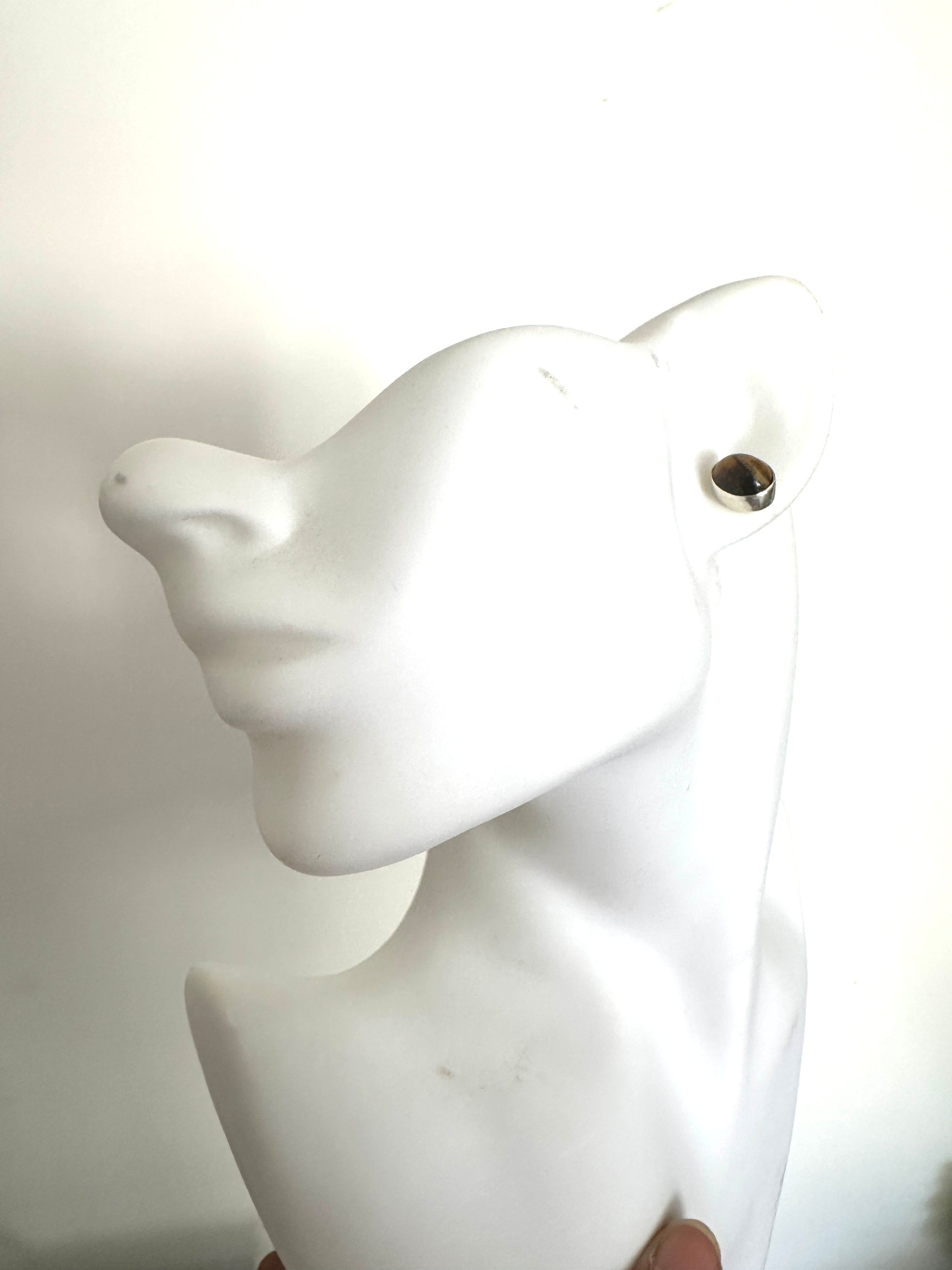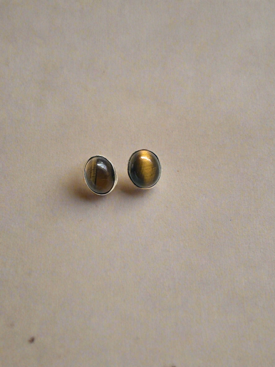 Our Tiger Eye cabochons, set in 925 silver studs, offer a unique and stylish addition to any jewelry collection. These eye-catching stones are known for their stunning patterns and warm, earthy tones. Made with high-quality materials, our earrings are both durable and beautiful. Elevate your look with the natural beauty of Tiger Eye.